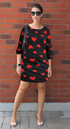 Kadın uzun kollu yuvarlak yaka desenli mini modal elbise