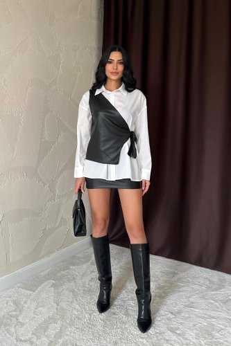 • Beyaz Yandan Bağlamalı Yelek Gömlek