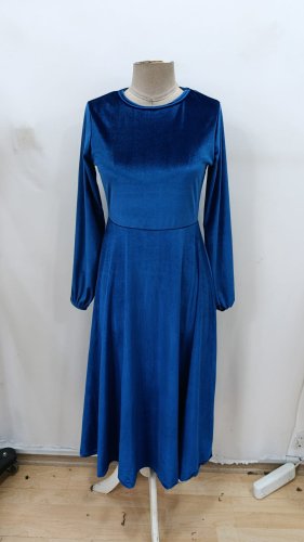 • Kadın uzun kollu bisiklet yaka midi kadife mavi elbise