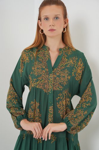 Desenli Uzun Tesettür Elbise 2585 YZümrüt