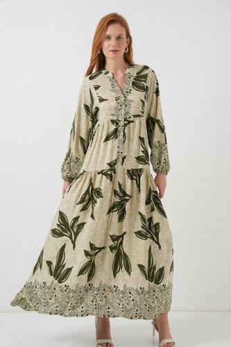 • Desenli Uzun Tesettür Elbise 2585 EYeşil