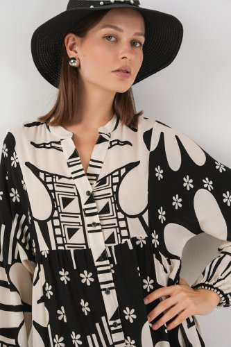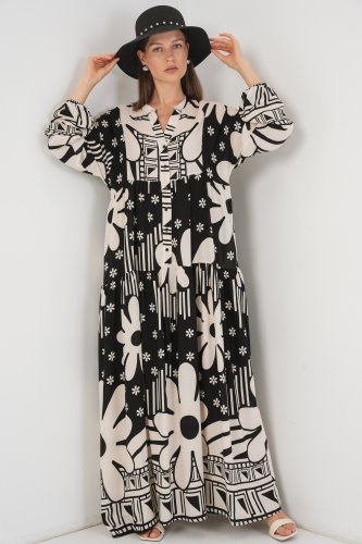 • Desenli Uzun Tesettür Elbise 2585 D Siyah
