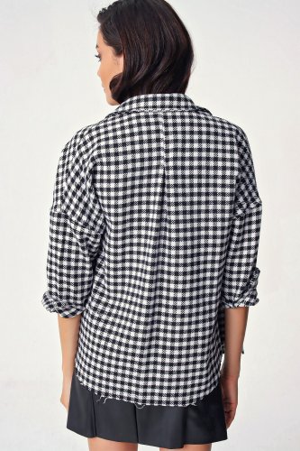 Ekose Desen Oversize Oduncu Gömlek 3854 Siyah Beyaz