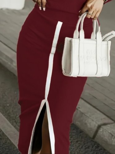 • Kadın uzun kollu bisiklet yaka kaşkorse bluz ve yırtmaçlı etek ikili takım