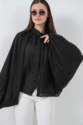• Yarasa Kol Oversize Gömlek 20368 Siyah