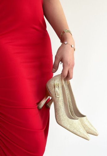 Cerin Gold Saten Simli Topuklu Ayakkabı